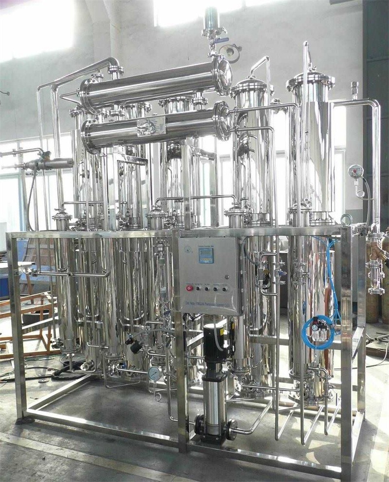 多效蒸馏水机是以去离子水为原料水,用蒸汽加热的蒸馏水生产设备。该设备所生产的蒸馏水水质稳定,纯度高,无热原,符合《中国药典》“注射用水”的规定,市个血液制品、针剂、大输液、生物抗菌素等药品生产厂家及饮用蒸馏水生产厂的理想设备。